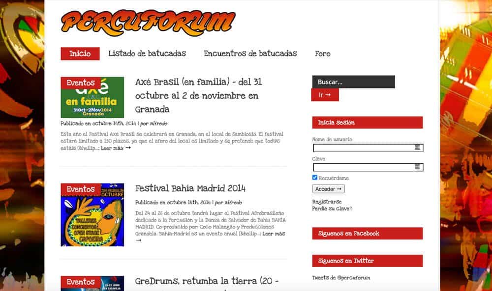 Tras crear el foro, comienza la creación del blog de batucadas para publicar noticias de actualidad sobre diferentes festivales, encuentros o talleres interesantes de percusión. Poco a poco comienzan a surgir más y más festivales por toda España y se crea un listado de encuentros de batucada para tenerlos a mano.