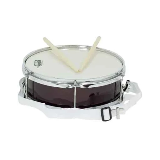 This box is a percussion instrument with birch wood shell and metal hoops. With snare and screw tension. Includes drumsticks and strap. DB Percussion brand.