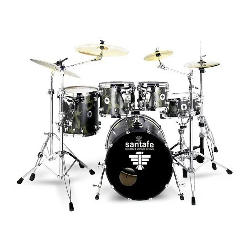 Maple shell and metal hoops. Remo heads. Choose between military, cow, leopard or tiger finish.