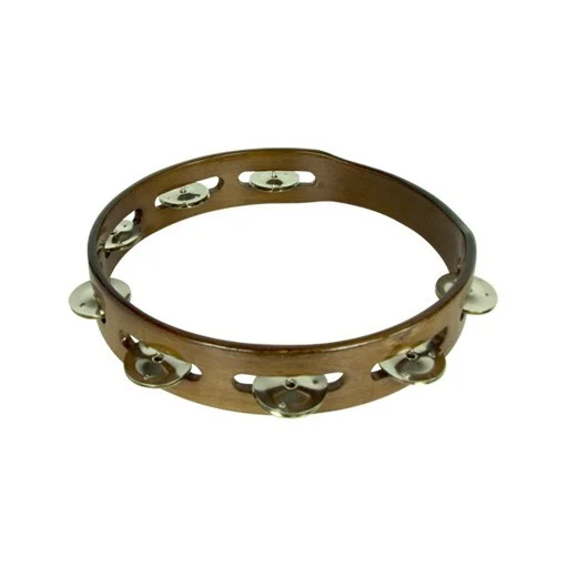Tambourines with a string of walnut stained jingles.Stf Classic.