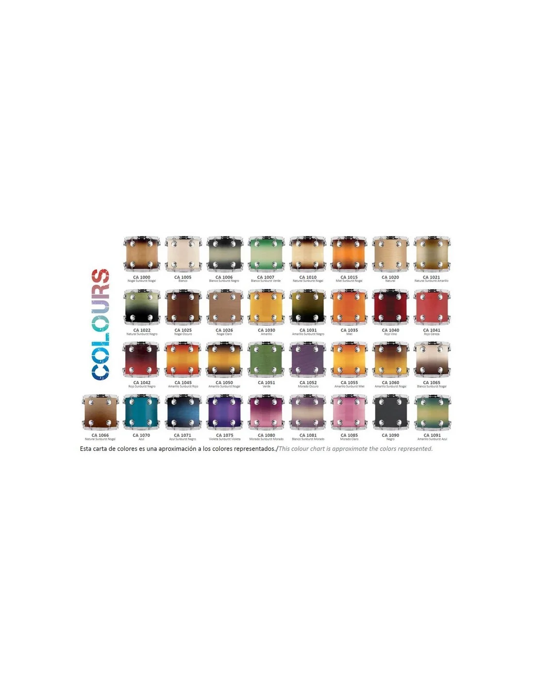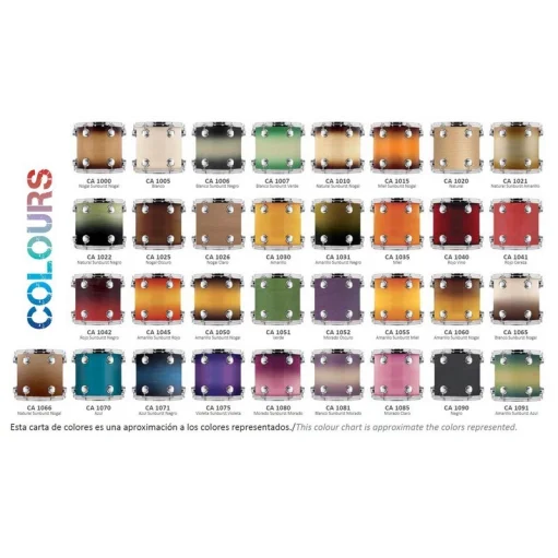 Cascos de arce y aros metálicos. Parches Remo.Elegir acabado en la tabla de colores.